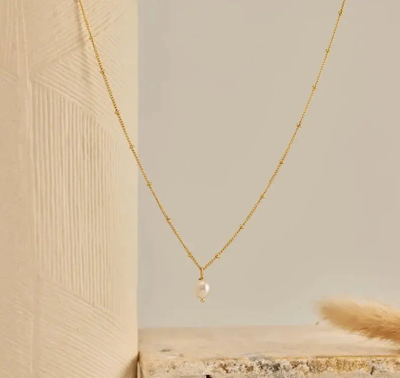 MINIMUM ORDER 10 UNITS Theย 18K Stainless Steel Pearl Drop Necklace is a timeless and elegant piece designed for modern jewelry...