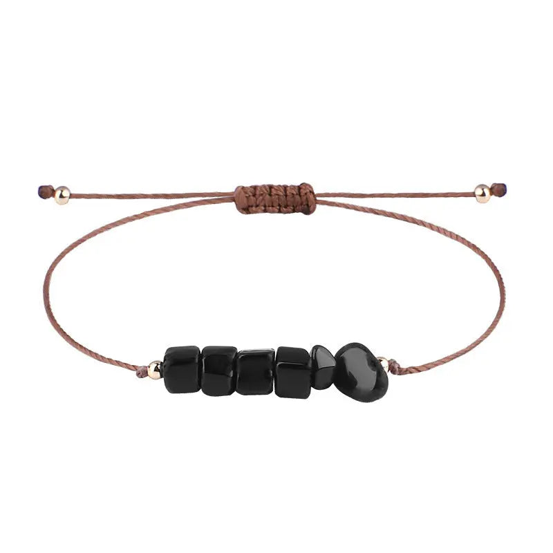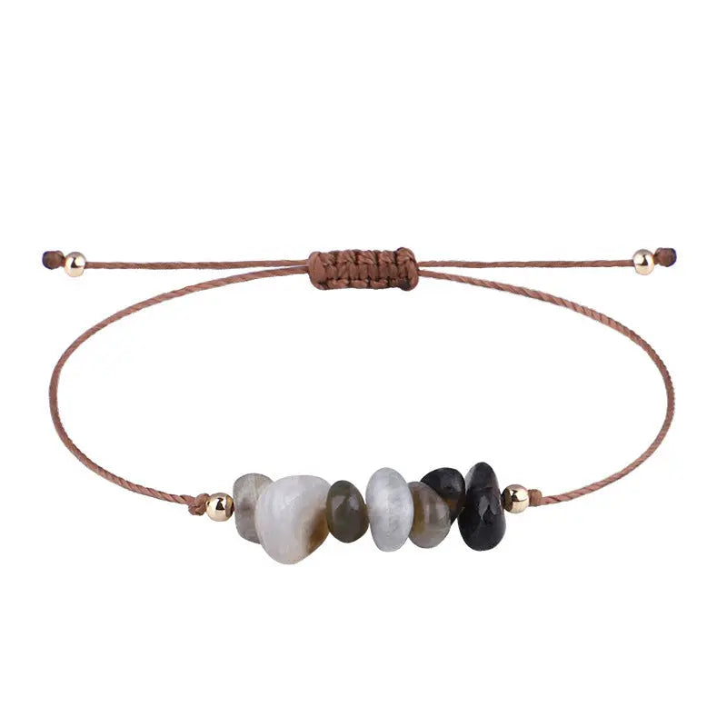 Irregular Raw Stone Woven Wax Line Bracelet